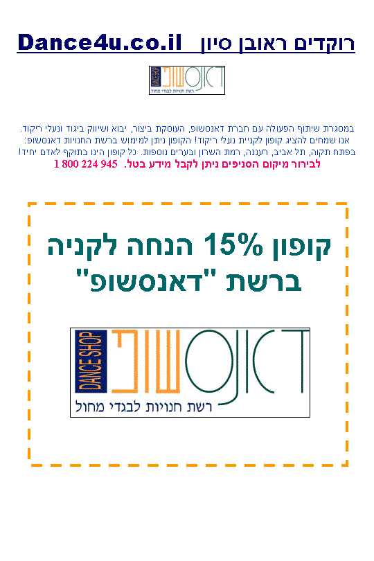 אנו גאים להציג קופון 15 אחוז הנחה לרכישת נעלי ריקוד של חברת דאנס שופ